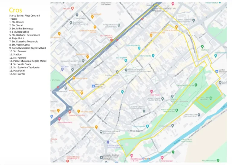 Proba de Cros are o lungime de 5 km și se va desfășura pe traseul indicat pe hartă.