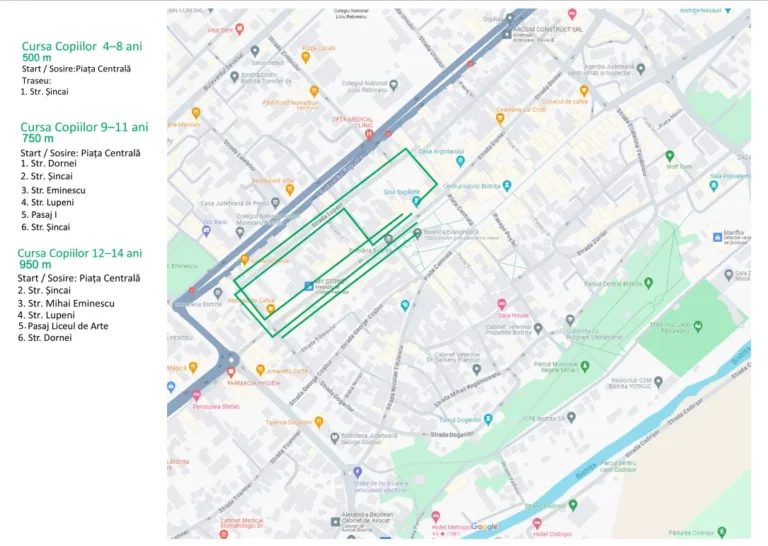 În funcție de vârstele la care se încadrează copiii, cursele se vor desfășura pe următoarele distanțe: 4-8 ani (550 m), 9-11 ani (750 m), 12-14 ani (950 m).
