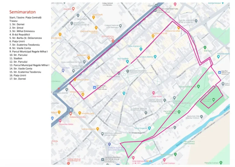 Proba de Semimaraton are o lungime de 5,2 km și se va desfășura pe traseul indicat pe hartă. La această probă se va parcurge traseul de 4 ori.